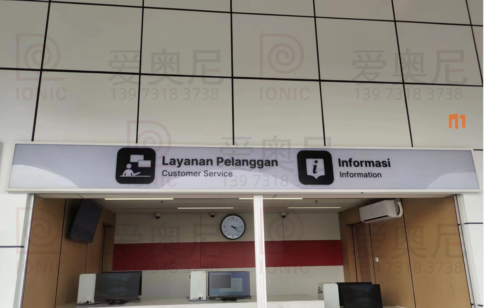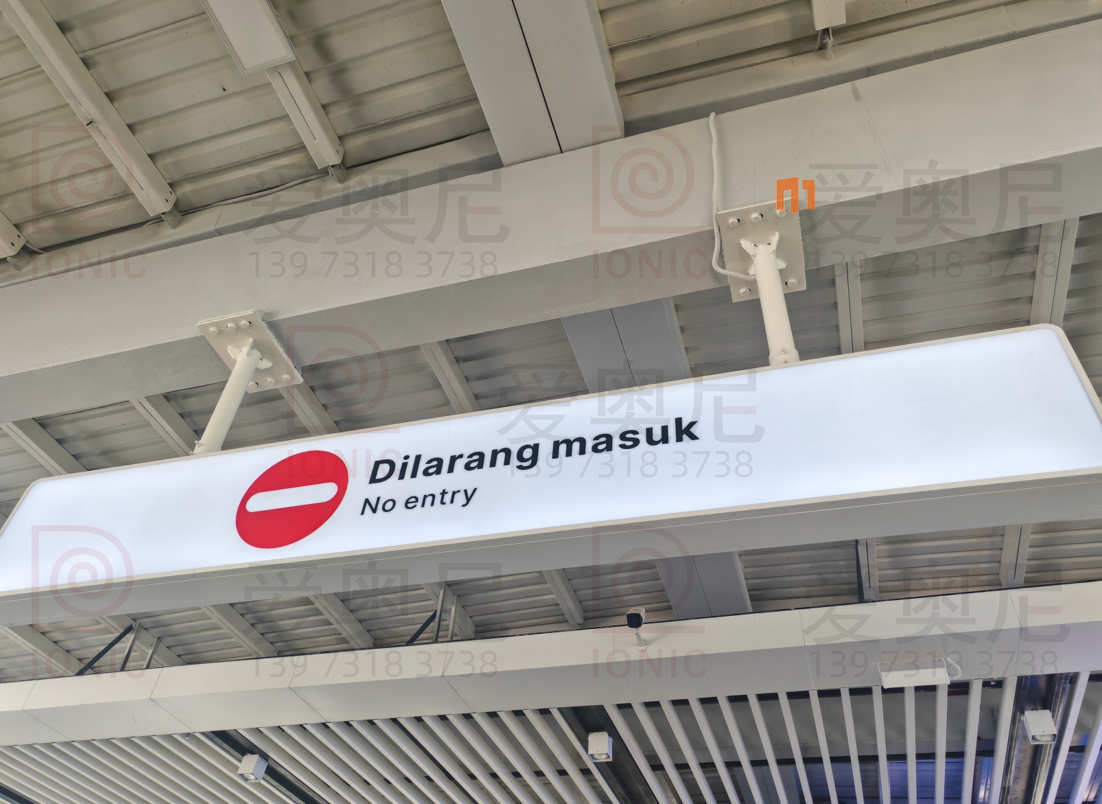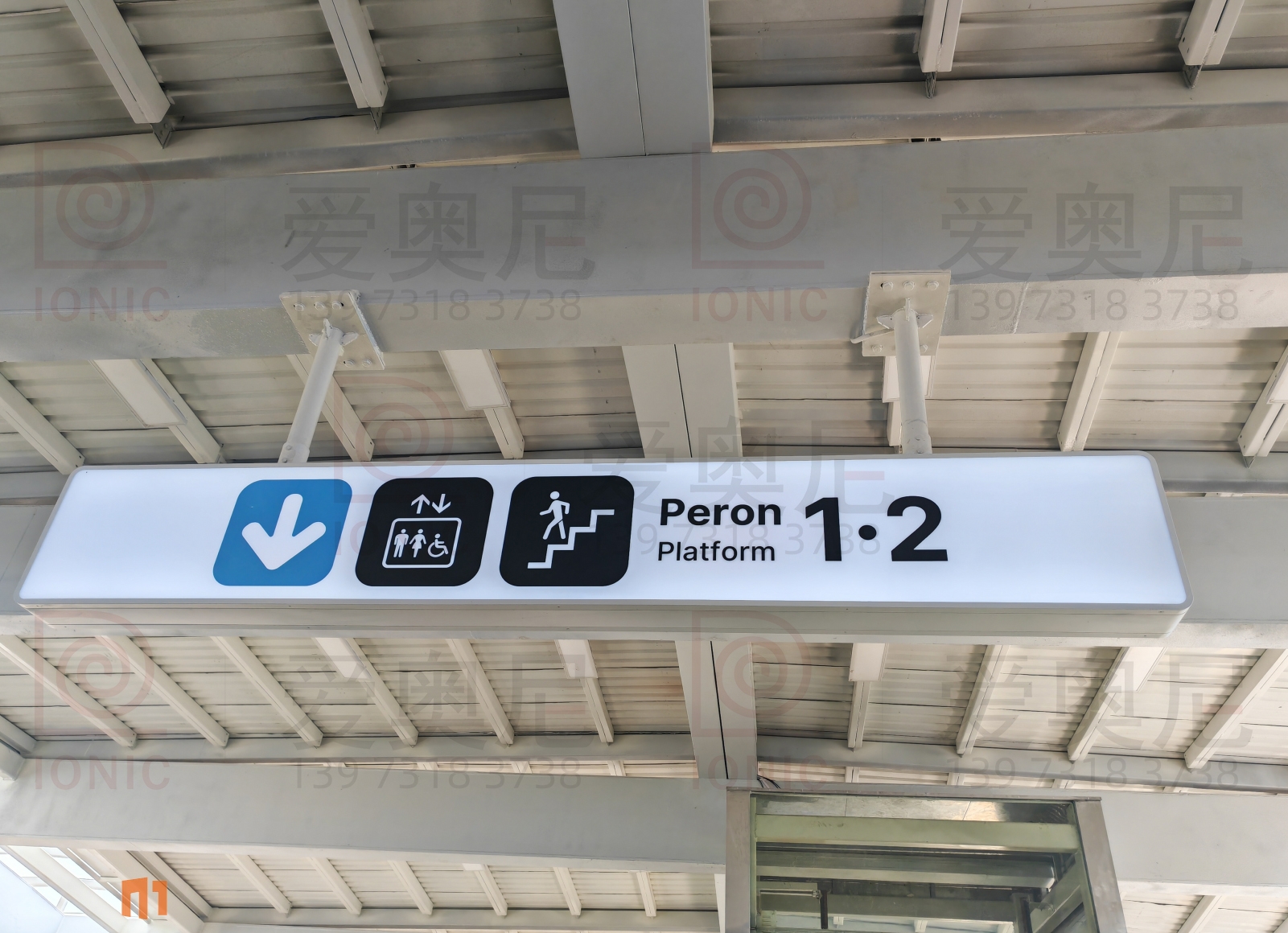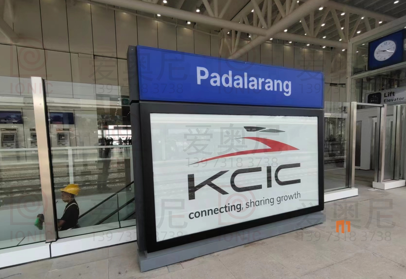 下圖是愛奧尼標識公司為印尼雅萬高鐵帕達拉郎站制作和安裝指導服務的靜態標識。客戶對項目制作工藝非常滿意。湖南愛奧尼標識工程有限公司是一家專業的鐵路標識,導向標識,高鐵站標識,站房標識,靜態標識設計制作安裝服務公司,擁有15年標識設計經驗,100多名專業生產團隊,獲得ISO9001質量管理體系認證等數10項榮譽資質證書,電話:400-0731-050,13973183738
