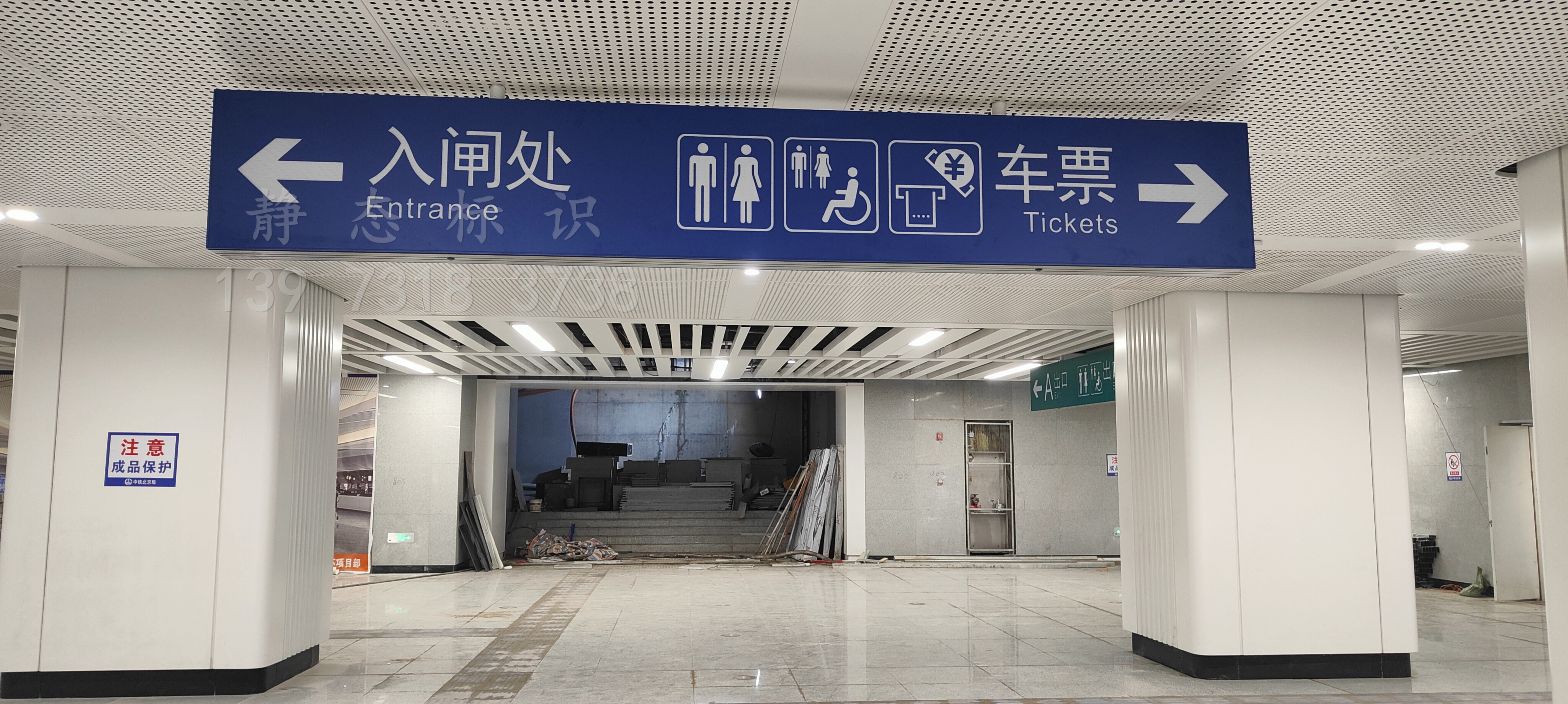 湖南愛奧尼標識工程有限公司憑借在軌道交通標識領域的豐富經驗,承擔了這兩座車站的靜態標識制作與安裝任務。我們的團隊嚴格遵循國家鐵路標識規范 ,結合車站建筑特點與客流組織需求,打造了一套直觀、易讀、耐久 的標識系統,涵蓋導向標識、功能標識、安全警示標識等多個類別。
