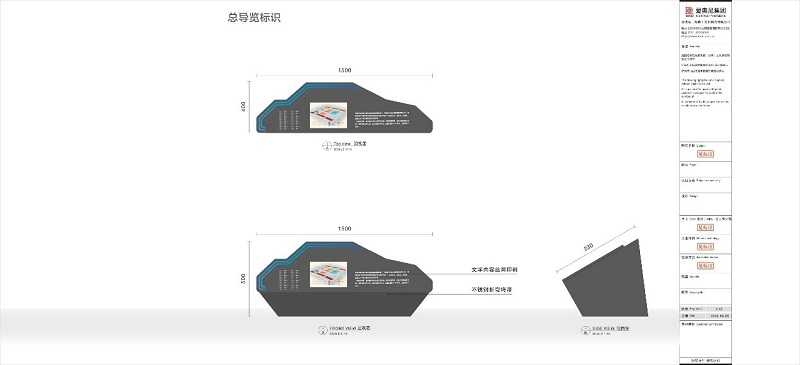 設計定稿:對客戶提出的建議和意見進行設計修改,合理優化工藝材質,進一步核準現場安裝條件,制定匯編完整的標識實施設計圖紙,完成設計定稿